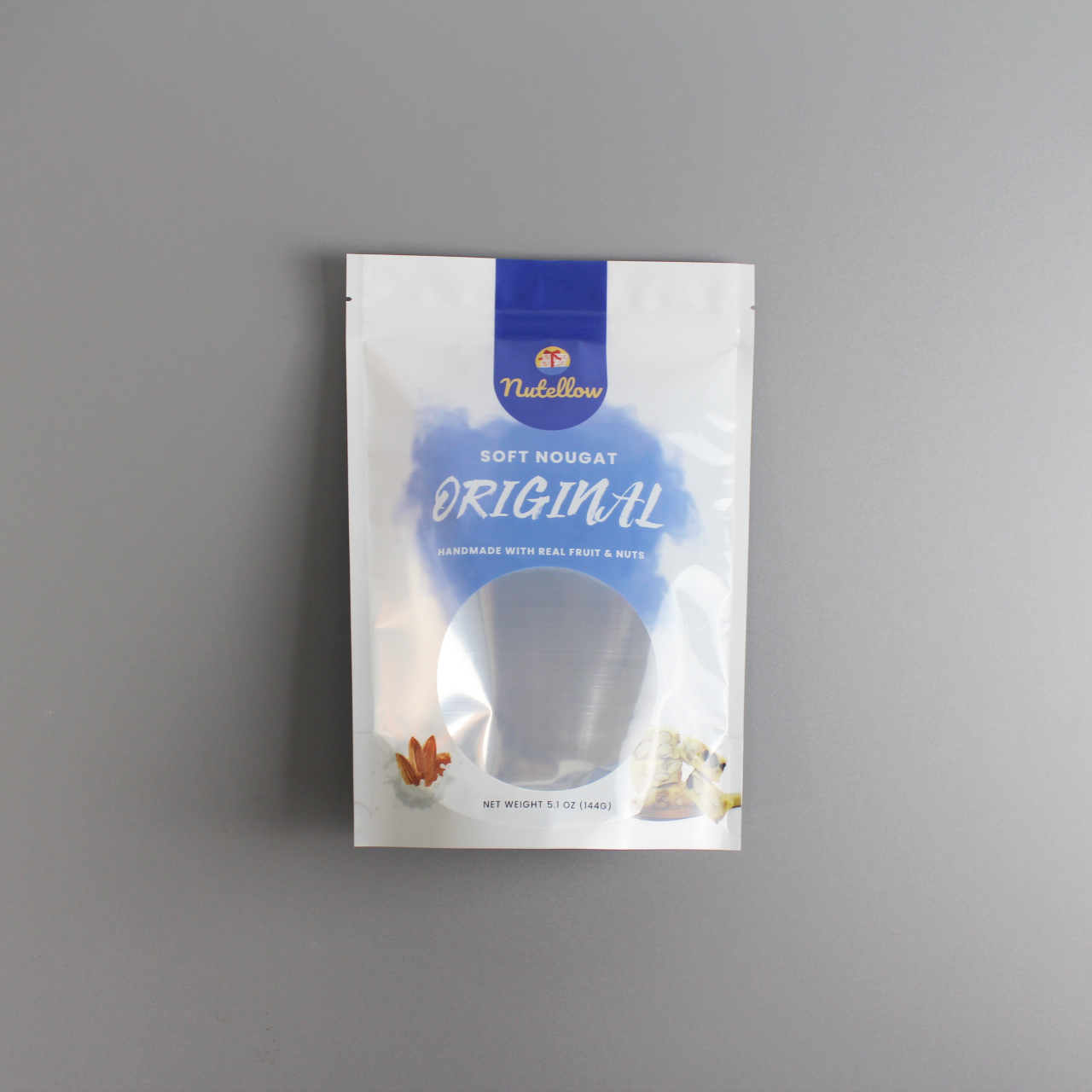 ತಿಂಡಿಗಳ ಪ್ಯಾಕೇಜ್ಗಾಗಿ ಕಿಟಕಿಯೊಂದಿಗೆ ಕಸ್ಟಮ್ ಮುದ್ರಿತ ಫಾಯಿಲ್ ಸ್ಟ್ಯಾಂಡ್ ಅಪ್ ಜಿಪ್ಪರ್ ಪೌಚ್